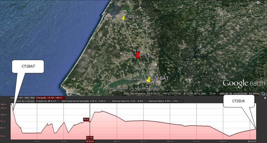 Os gráficos reais (do Google Earth) ajudam a perceber a localização de TX/RX.